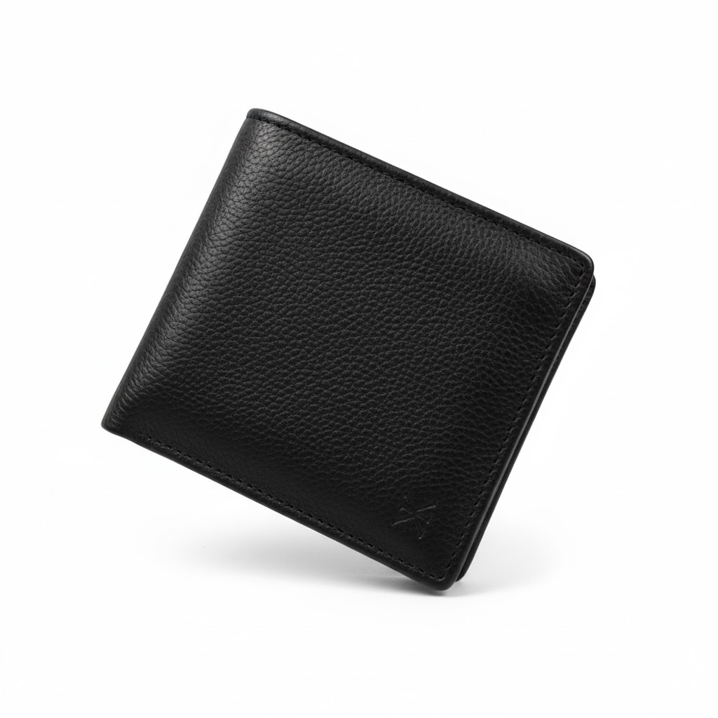 A compact, two-section wallet that folds in half, offering a slim profile for carrying cards and cash while providing ample storage for daily essentials.